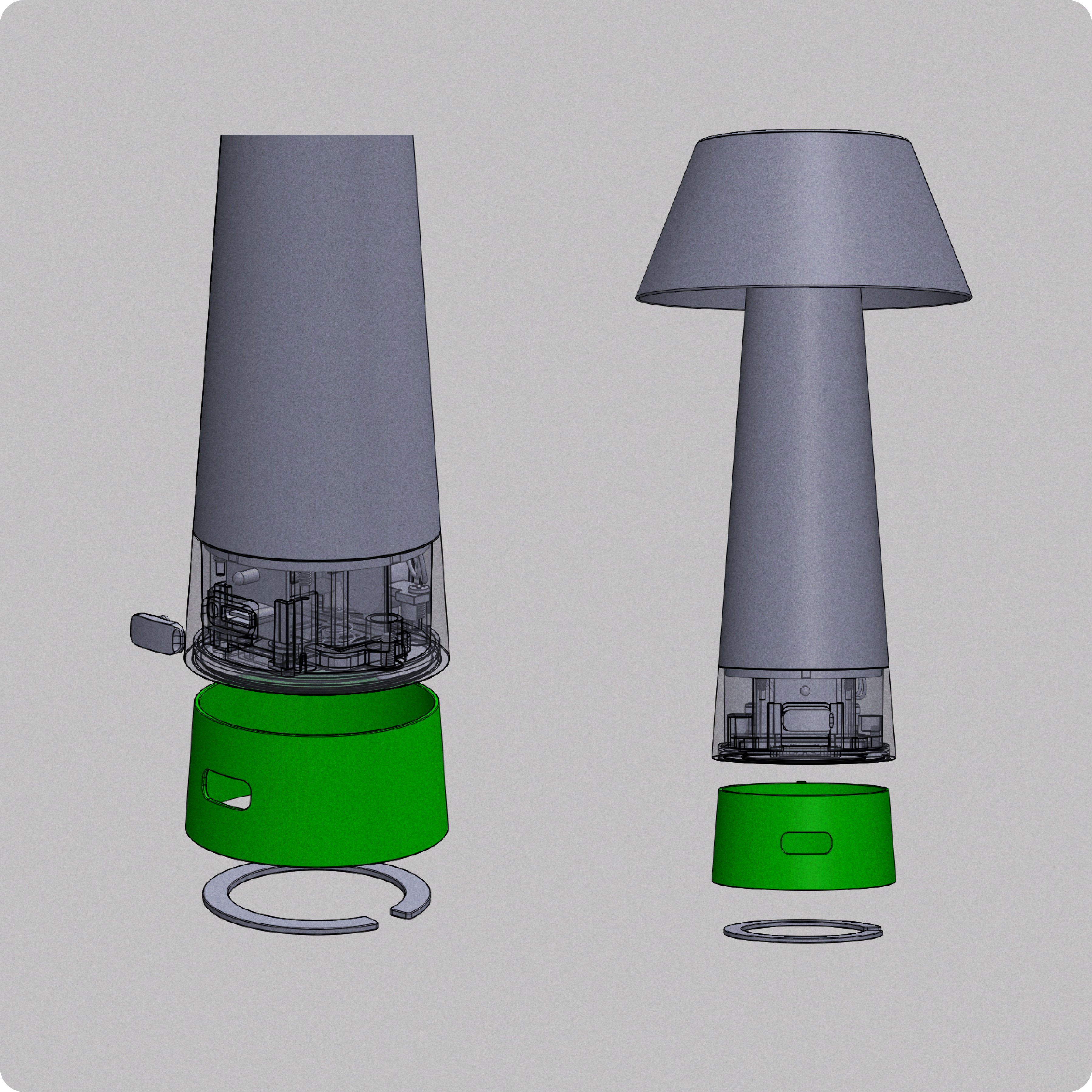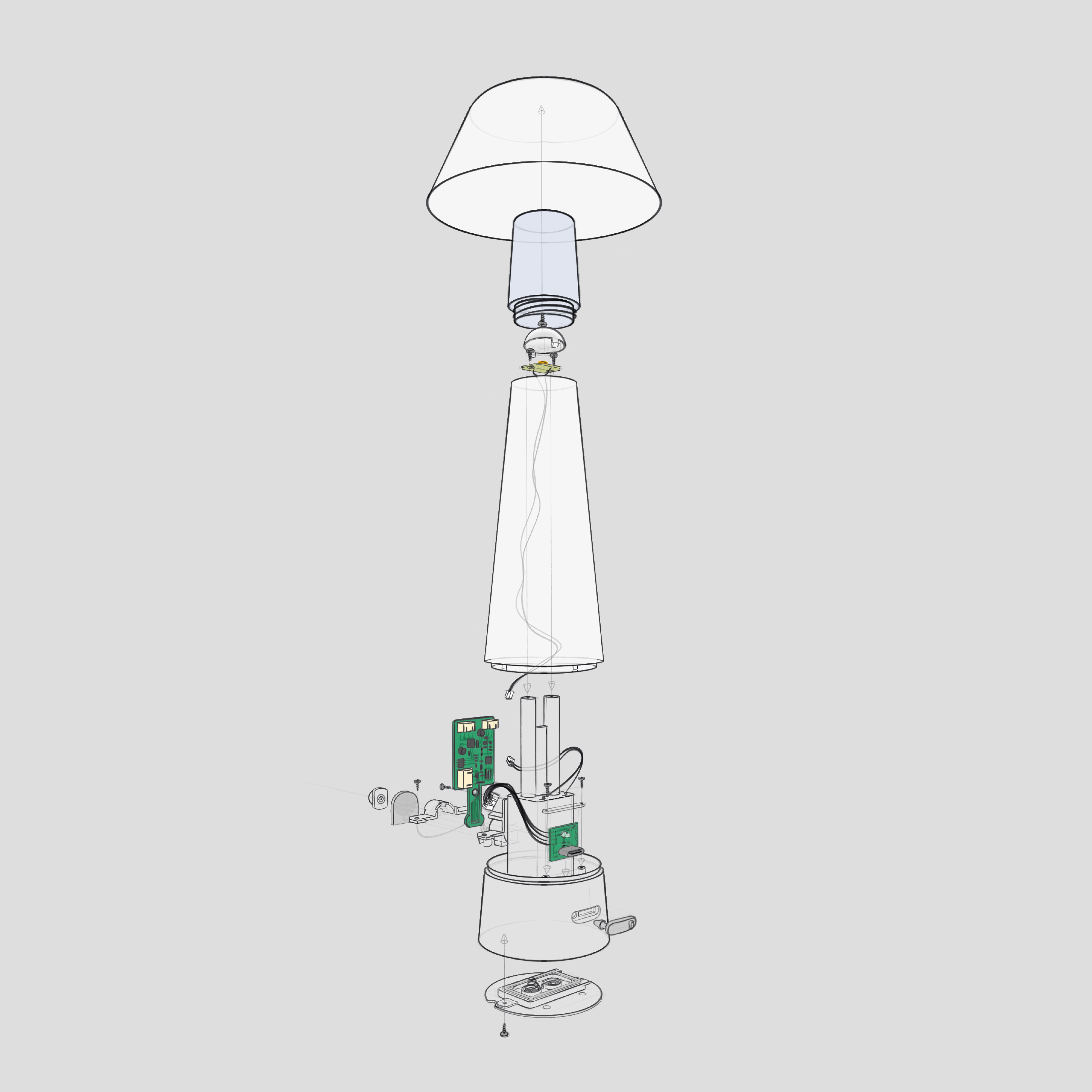 Throughout the development, particular attention was given to electronic components, mechanical functionality, and the integration of high-quality materials. The aim was to create a lighting object that combines clear functionality with a refined tactile experience. Interaction was intended to remain intuitive and effortless, allowing the product to operate naturally while leaving a lasting sense of quality and satisfaction during use.