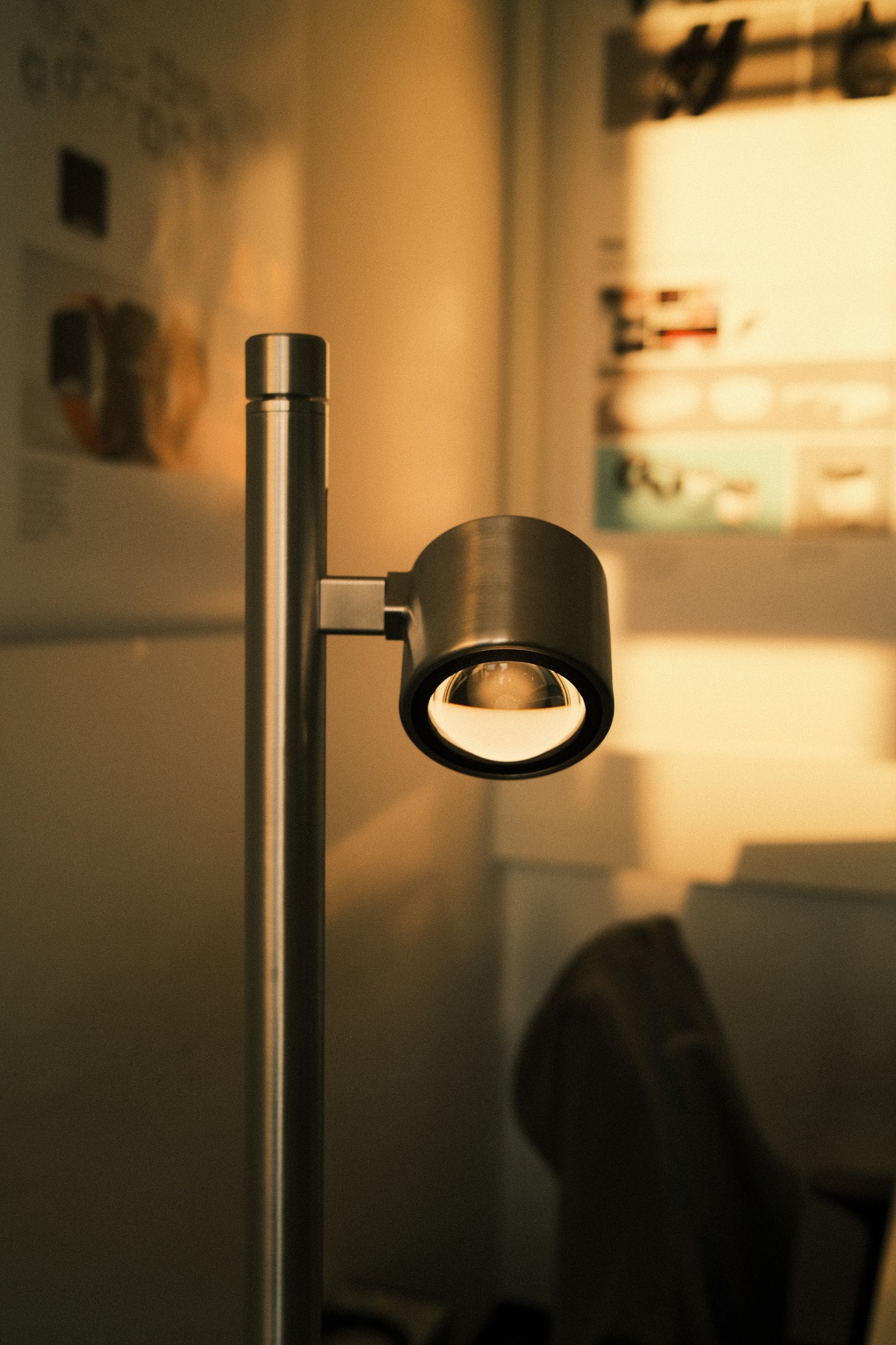 A continuously adjustable dimmer provides full control: a click switches the light on or off, while a smooth motion precisely regulates brightness. The lamp head can be adjusted in height and rotated freely by 360 degrees, allowing individual lighting situations to be created with ease. By simply tilting the head, either directed or indirect light can be produced, depending on the desired function or atmosphere. Precisely manufactured components and a carefully developed joint mechanism ensure effortless handling.