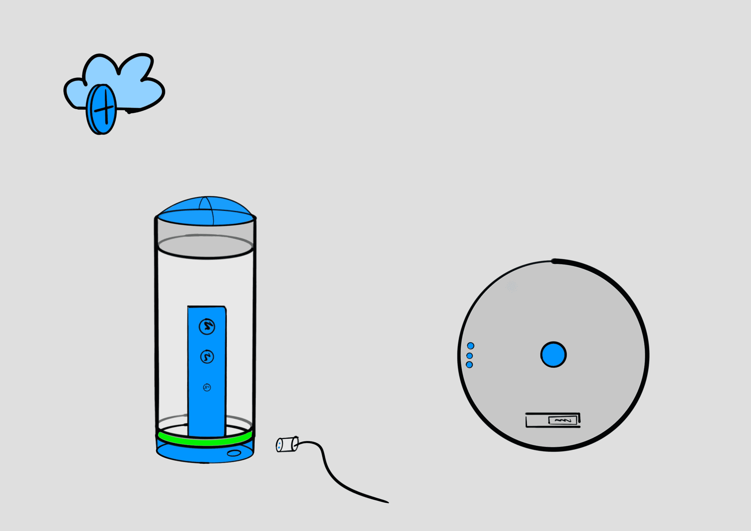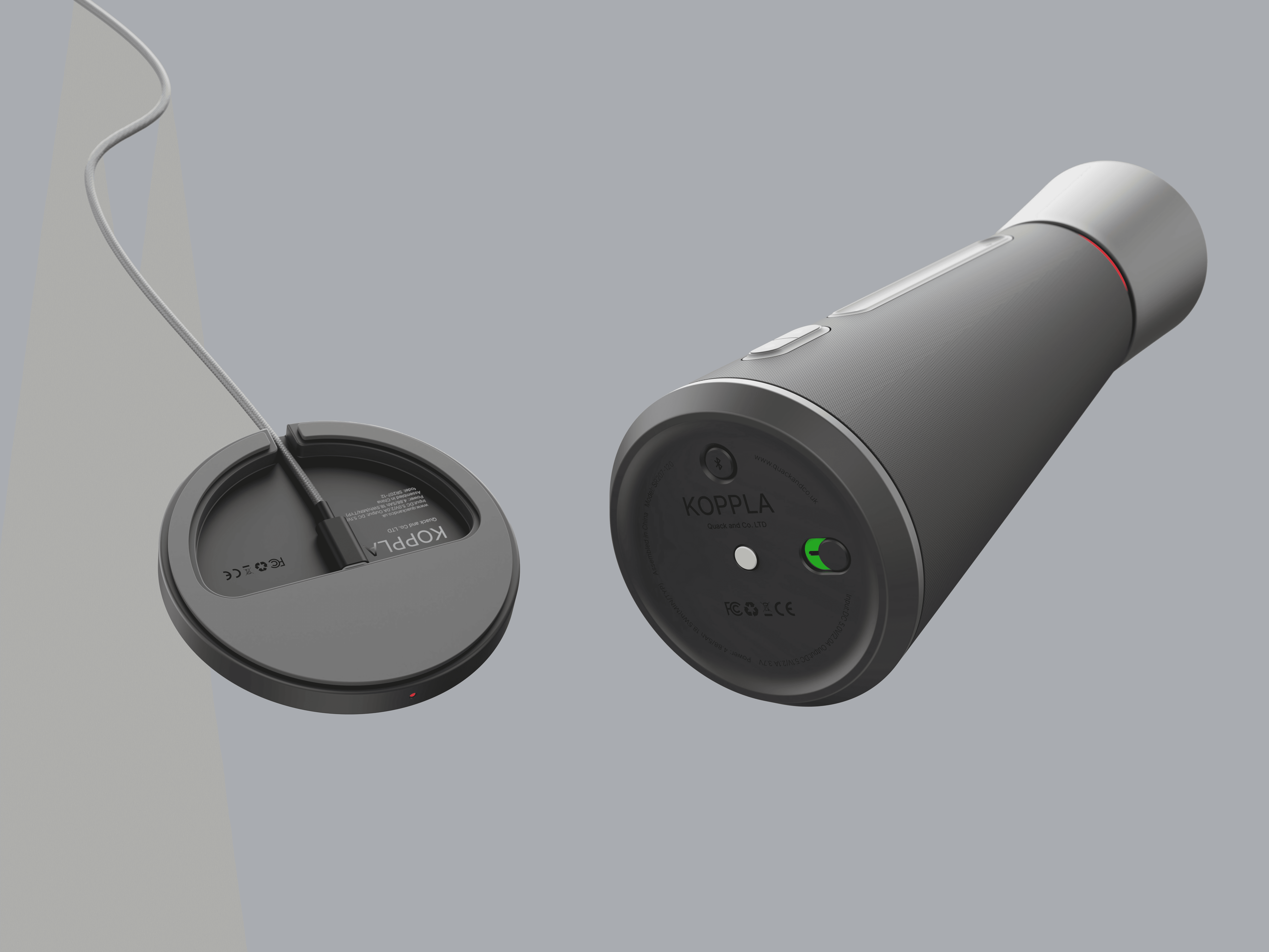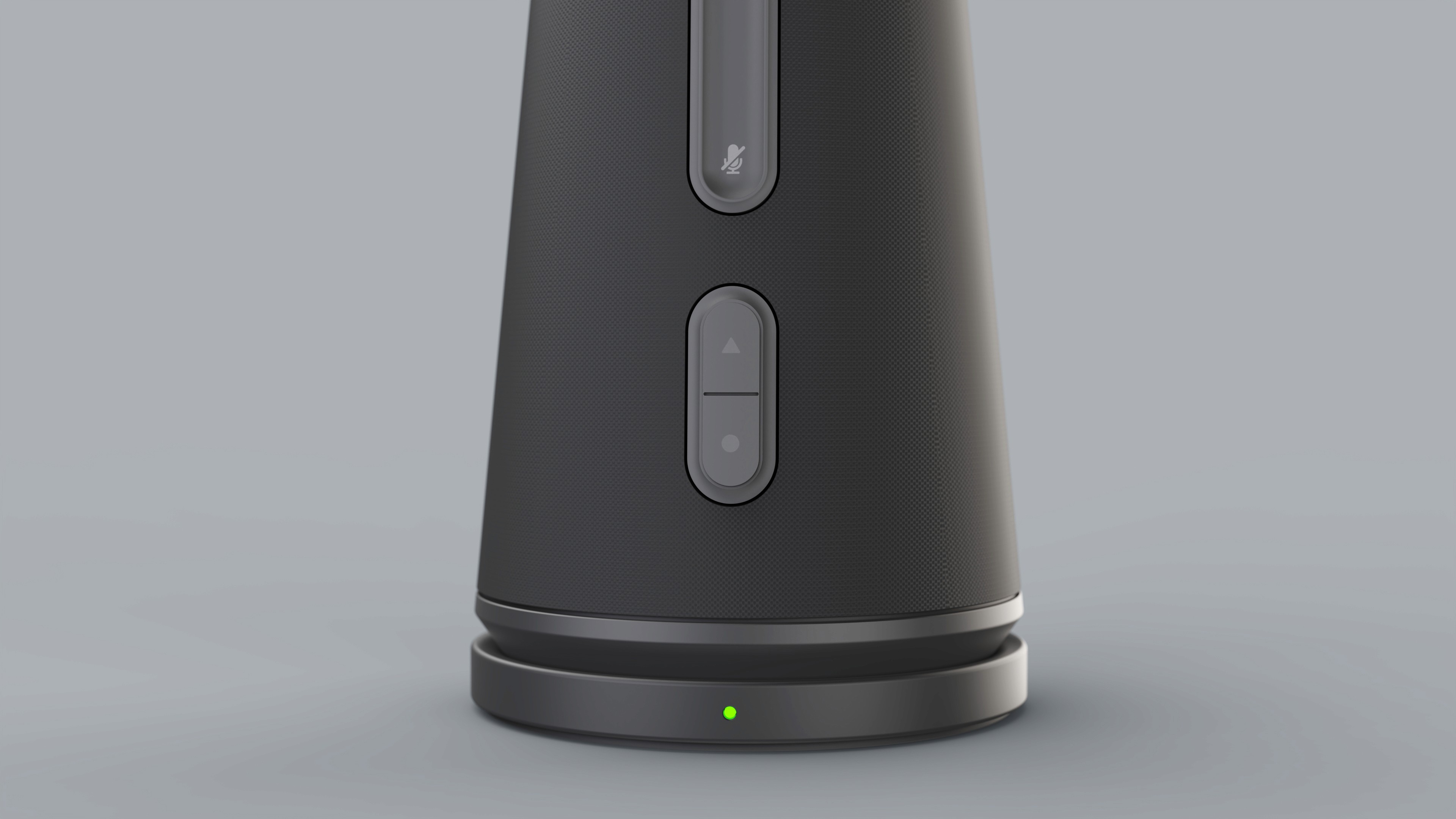 The final design concept uses materials such as textured plastic and a mesh covering to create a high-quality feel. The controls are minimal and have been designed to enable intuitive and error-free operation. Thanks to their clear arrangement and tactile design, they can be operated safely even without visual control. In addition, their shape follows that of the main body and blends into the overall picture. An LED indicator also provides information about various operating states.