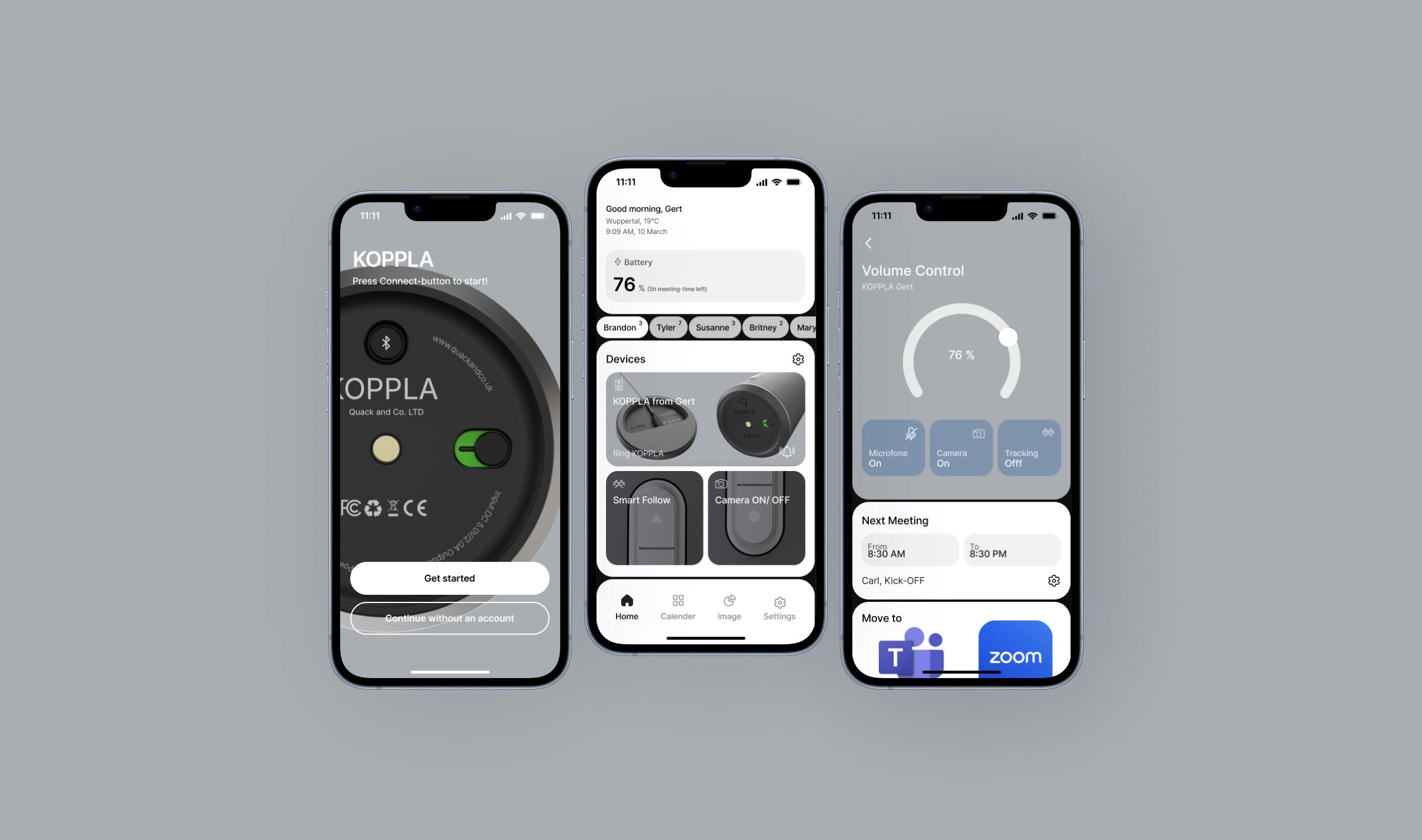 A market analysis of existing video conferencing systems and a subsequent analysis of a selected product have shown that many of the available solutions are inflexible and cumbersome to use. These devices often include features that are either superfluous or difficult to access. The seamless connection between physical and virtual interaction poses a particular challenge. A video conferencing system should enable a natural conversation atmosphere rather than being perceived as an obstacle. The developed product should therefore impress with its intuitive operation and adaptability in order to avoid distractions caused by unnecessary functions. In addition, flexible and uncomplicated use must be guaranteed.