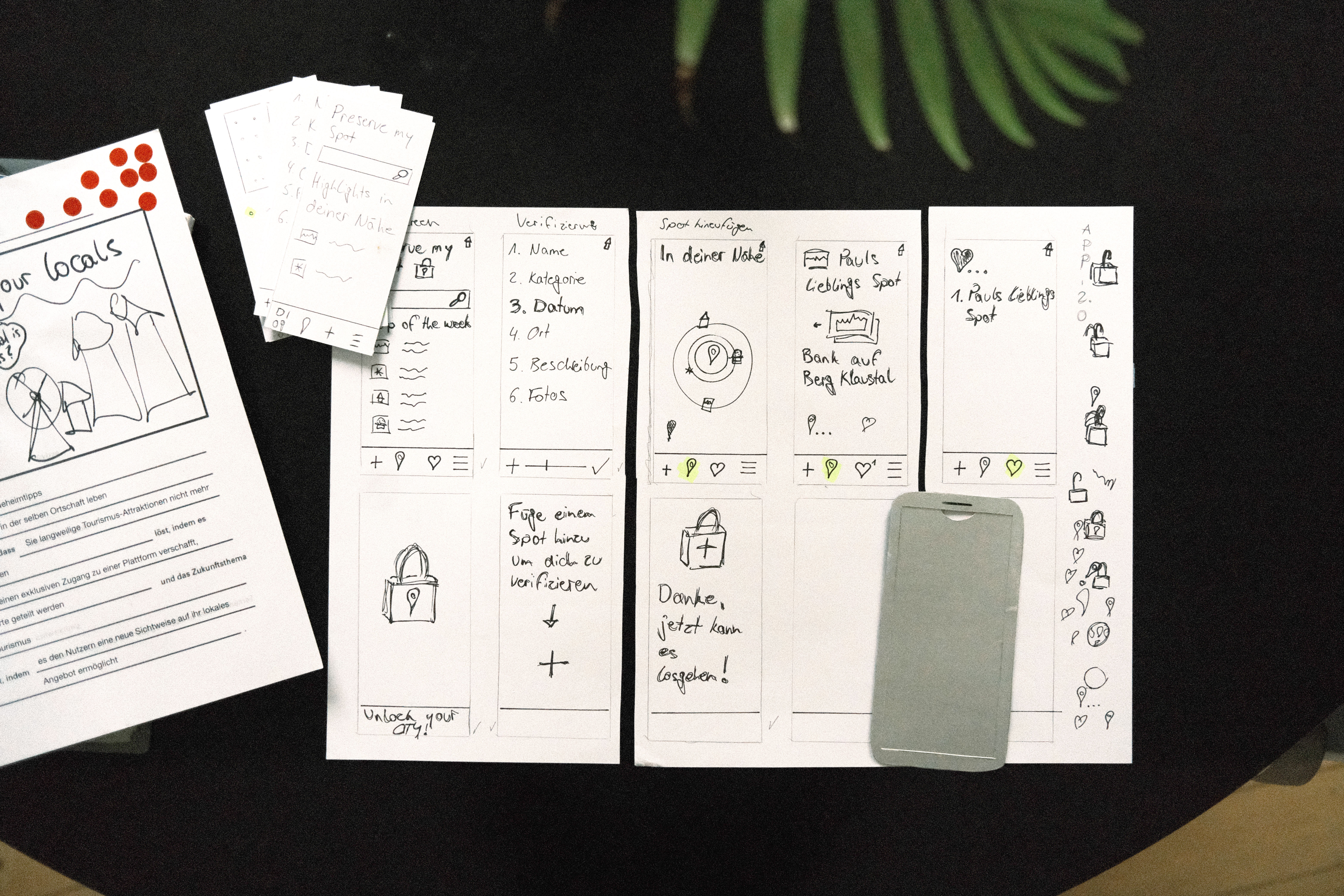 Initial design decisions regarding the user interface and interaction were developed using paper prototypes. Following the creation of moodboards, the visual and functional design of the interface was implemented.